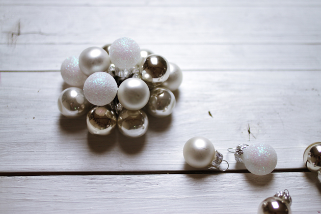 Wenn schon kein Schnee liegt zu Weihnachten, muss zumindest der Schmuck besonders schön glitzern. Diesen Heiligabend werde ich mein Haupt mit einem funkelnden Schneeball aus Mini Christbaumkugeln zieren. Das ist super einfach und habt ihr 10 Minuten fertig gezaubert.