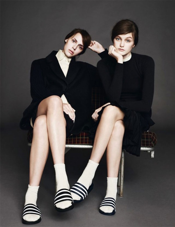 Das derzeitige Objekt der Begierde: Adiletten. Ihr wisst schon, diese Badelatschen, die im gemeinen Volksmund gerne auch einmal als "Assiletten" bezeichnet werden. Auf den Markt warf adidas die Schlappen im Jahre 1972 und bewirbt sie seitdem im Kontext von Sport und Komfort. Lange verpönt dagegen: das Tragen auf der Straße. Der modebewusste Mensch führte sie maximal beim Saunieren aus. Und eigentlich hätte die ganze Angelegenheit so friedlich weiter vor sich hindümpeln können, wenn nicht auf einmal Modemädchen in ganz Europa damit begonnen hätten, sich die Finger nach den blauweißen Tretern zu lecken. Angestoßen haben den ganzen Hype wieder einmal die Skandinavier, die im Zuge ihrer gepflegten Nonchalance die Dinger kurzerhand in die Front Row der Modewoche beförderten. Und schwuppdiwupp finden auch wir anderen die einst als so hässlich empfundenen Gummisandalen nun ziemlich schmucke. Gut, der anhaltende 90er Jahre Trend spielt da sicherlich auch noch mit herein. Schließlich glauben wir seit kurzem auch wieder, dass wir ohne Spaghettiträger, Spice-Girls-Friesen und Collageshirts nicht leben können. Aber das ist eine andere Geschichte.